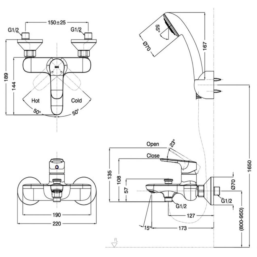 Vòi Sen Tắm Inax BFV-283S (BFV283S) nóng lạnh, tay sen 1 chế độ massage