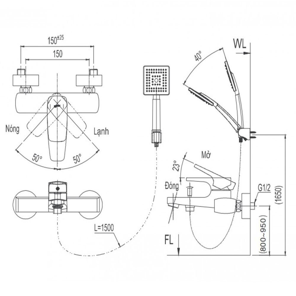 Vòi sen tắm INAX BFV-5003S (BFV5003S) nóng lạnh, tay sen vuông 1 chế độ