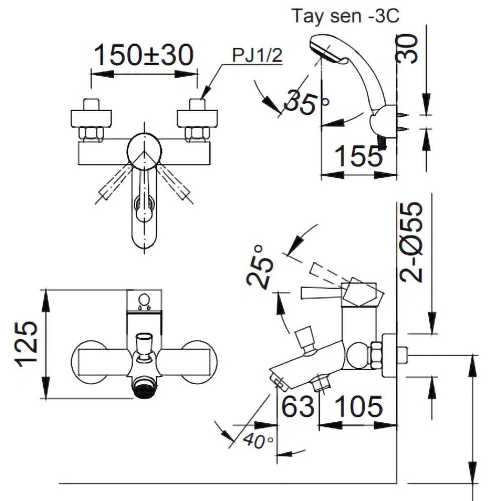 ♦ Tay sen 1C, 3 chế độ