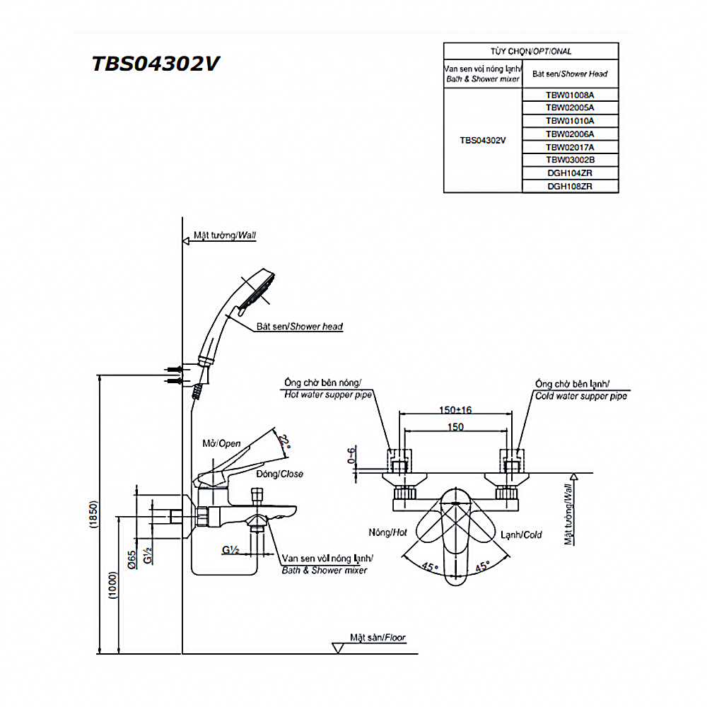 Vòi sen tắm TOTO TBS04302V nóng lạnh (không kèm tay sen)