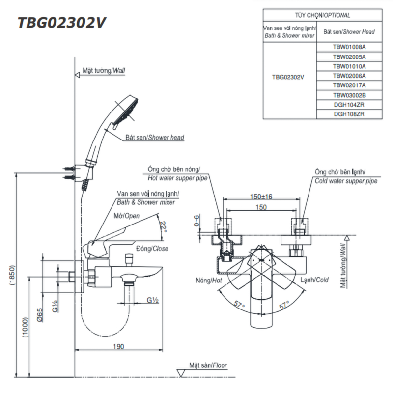Vòi sen tắm TOTO TBV03429V/ TBW02006V nhiệt độ Nhật Bản dòng GG