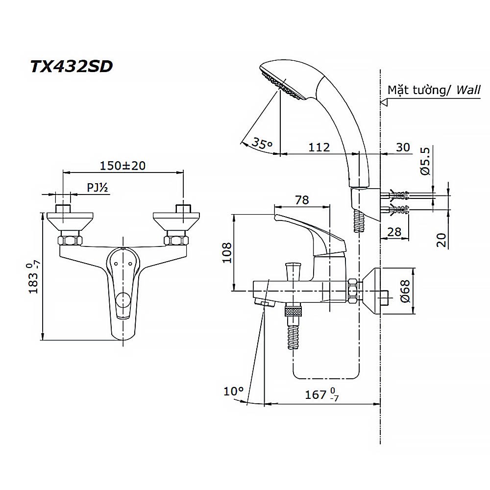 Home » Cửa hàng » Vòi sen tắm » Vòi sen tắm nóng lạnh » Vòi sen tắm nóng lạnh Toto » Vòi sen tắm TOTO TX432SD nóng lạnh