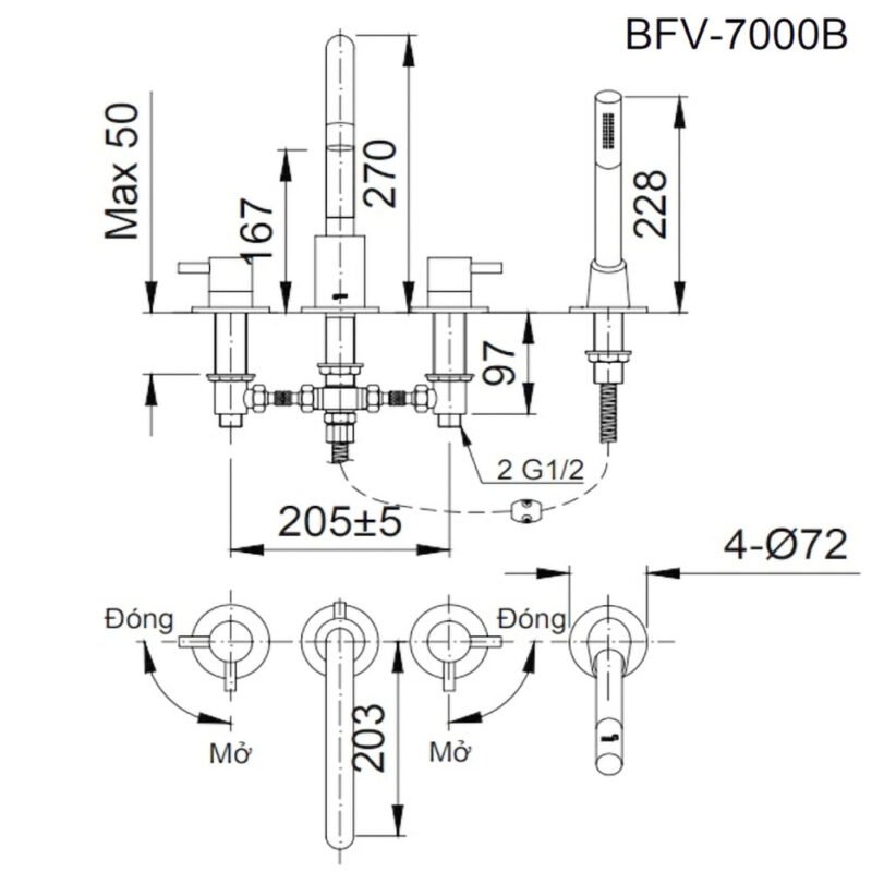 Vòi xả bồn tắm INAX BFV-7000B (4 lỗ)
