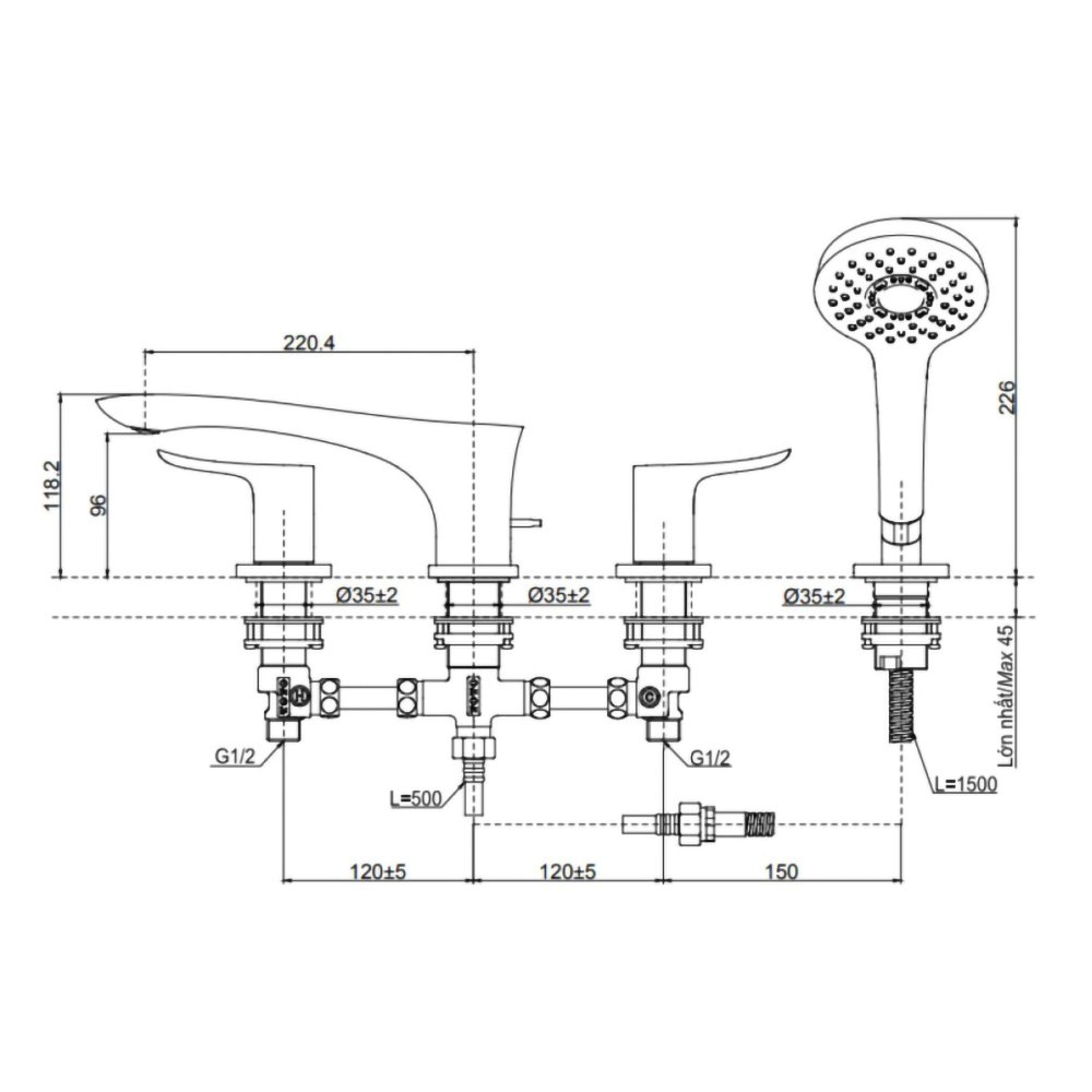 Home » Cửa hàng » Vòi sen bồn tắm » Vòi sen bồn tắm gắn bồn » Vòi sen bồn tắm gắn bồn Toto » Vòi xả bồn tắm TOTO TBG01202BB#BFG dòng GO (4 lỗ), màu Vàng pháp mờ, kèm tay sen
