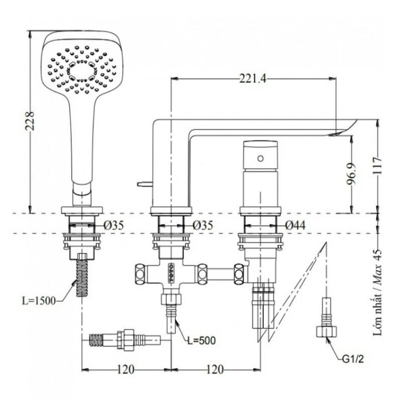 Home » Cửa hàng » Vòi sen bồn tắm » Vòi sen bồn tắm gắn bồn » Vòi sen bồn tắm gắn bồn Toto » Vòi xả bồn tắm TOTO TBG03202B nóng lạnh, dòng GS (4 lỗ), màu Crom bóng, kèm tay sen
