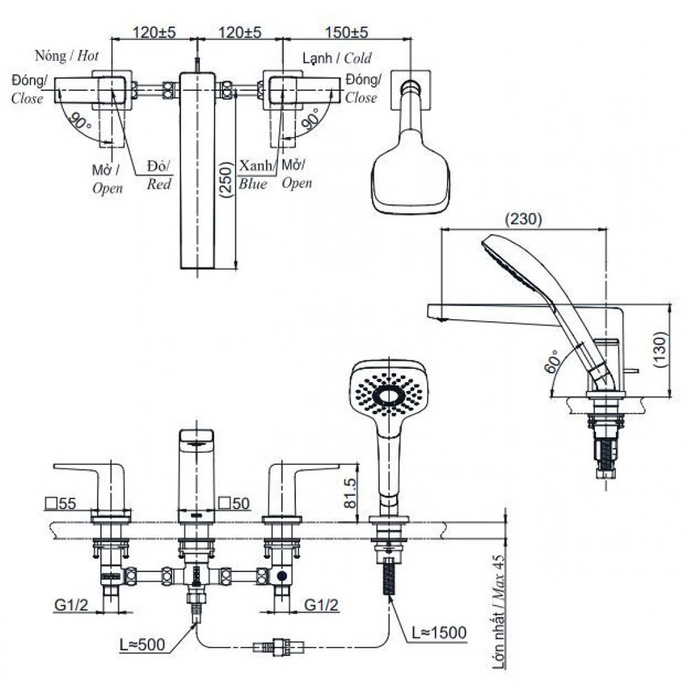 Vòi xả bồn tắm TOTO TBG10202A#PN nóng lạnh, dòng GB (4 lỗ), màu Nikel bóng, kèm tay sen