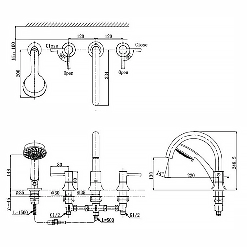 Vòi xả bồn tắm TOTO TBG03202B nóng lạnh, dòng GS (4 lỗ), màu Crom bóng, kèm tay sen