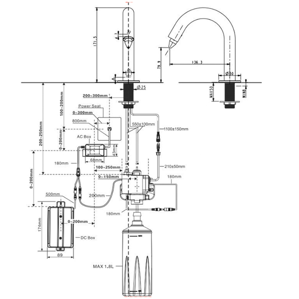 Vòi xà phòng AMERICAN STADARD WF-8102 (WF8102) cảm ứng dùng pin hoặc điện 100~240V
