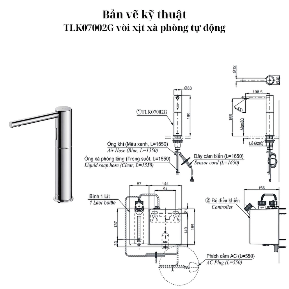 Vòi xịt xà phòng TOTO TLK07001G cảm ứng (không kèm bộ điều khiển)